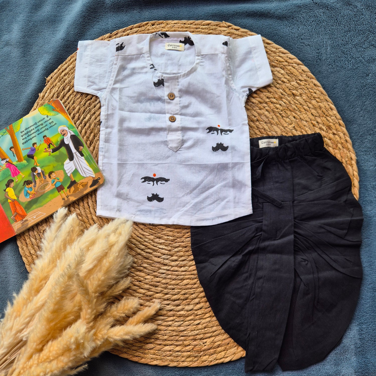 Black Pichwai Cow Cotton Kids Dhoti Set (0-5yrs) - Sokkaai