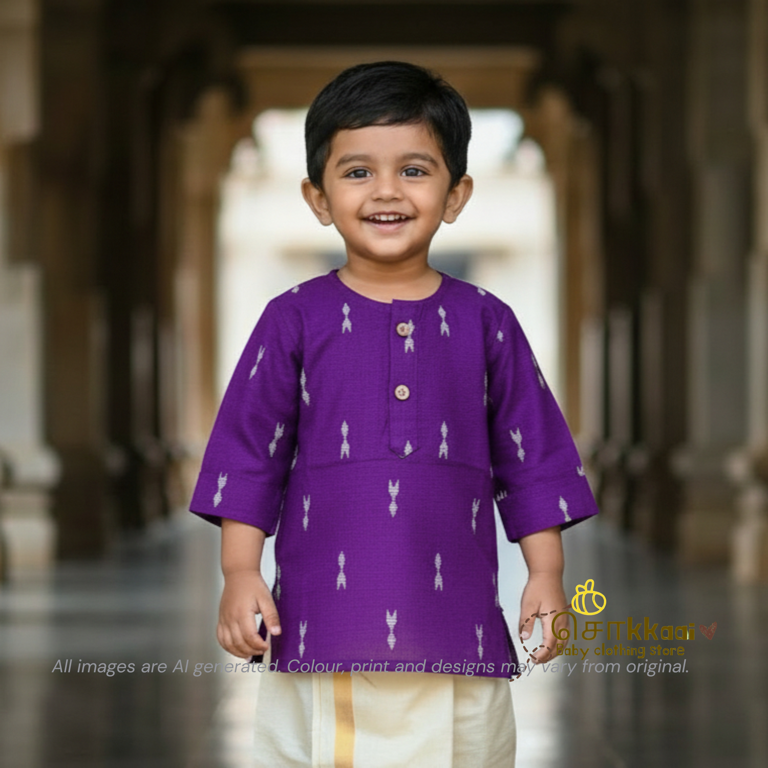 Royal purple arrow elbow sleeve kurta - (6m-12years) Sokkaai