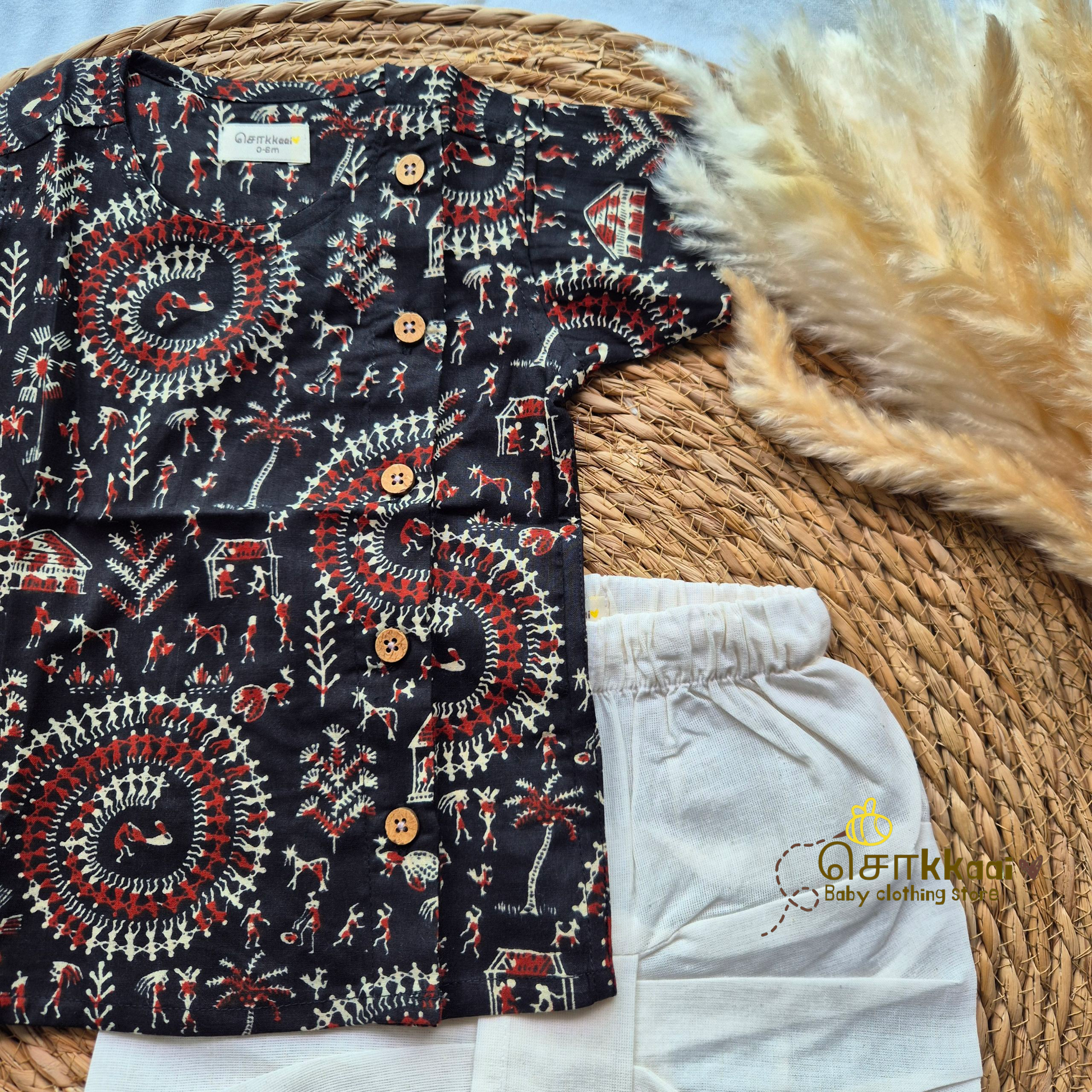 Black warli Cotton Kids dhoti set (0-5yrs) - Sokkaai