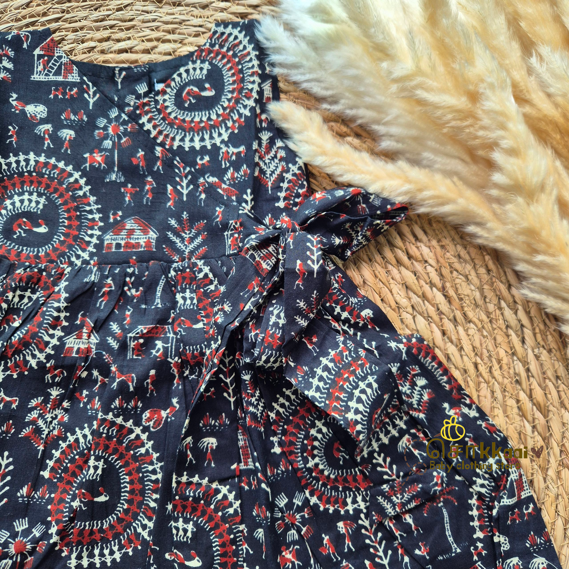 Black warli Overlap Flared Girl Frock (0-3years) - Sokkaai
