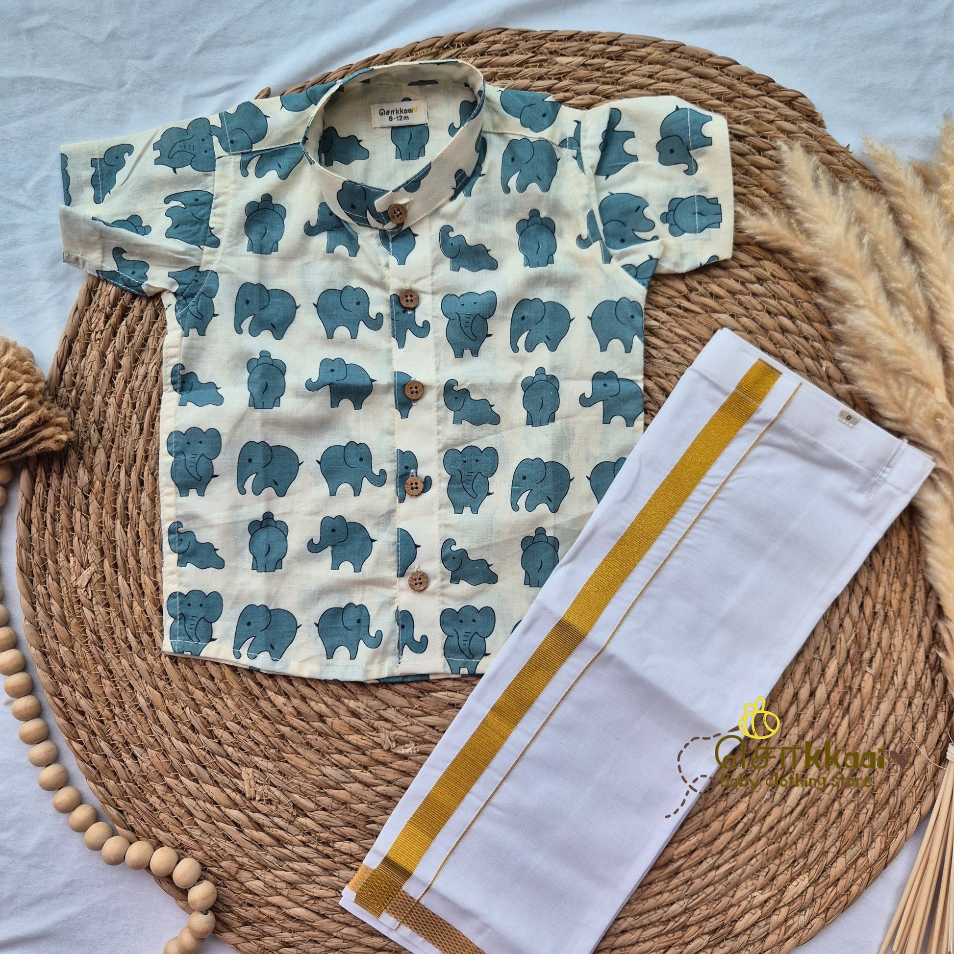 Blue small elephant cambric cotton Kids Shirt (6m to 5years) - Sokkaai