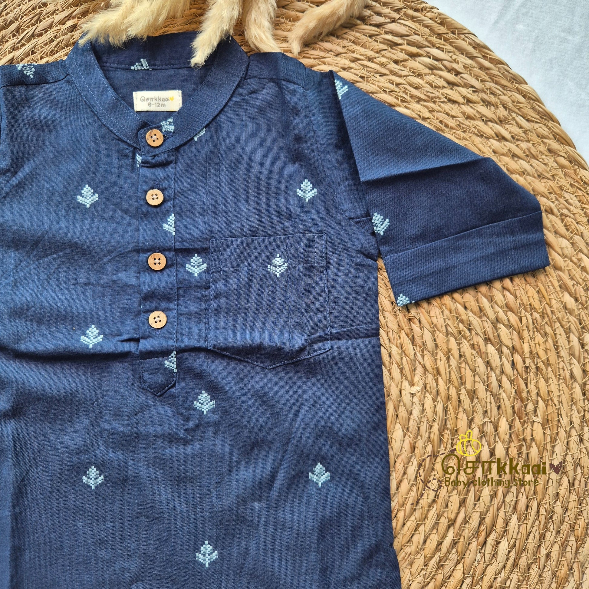 Deep navy blue elbow sleeve kurta - (6m-12years) Sokkaai