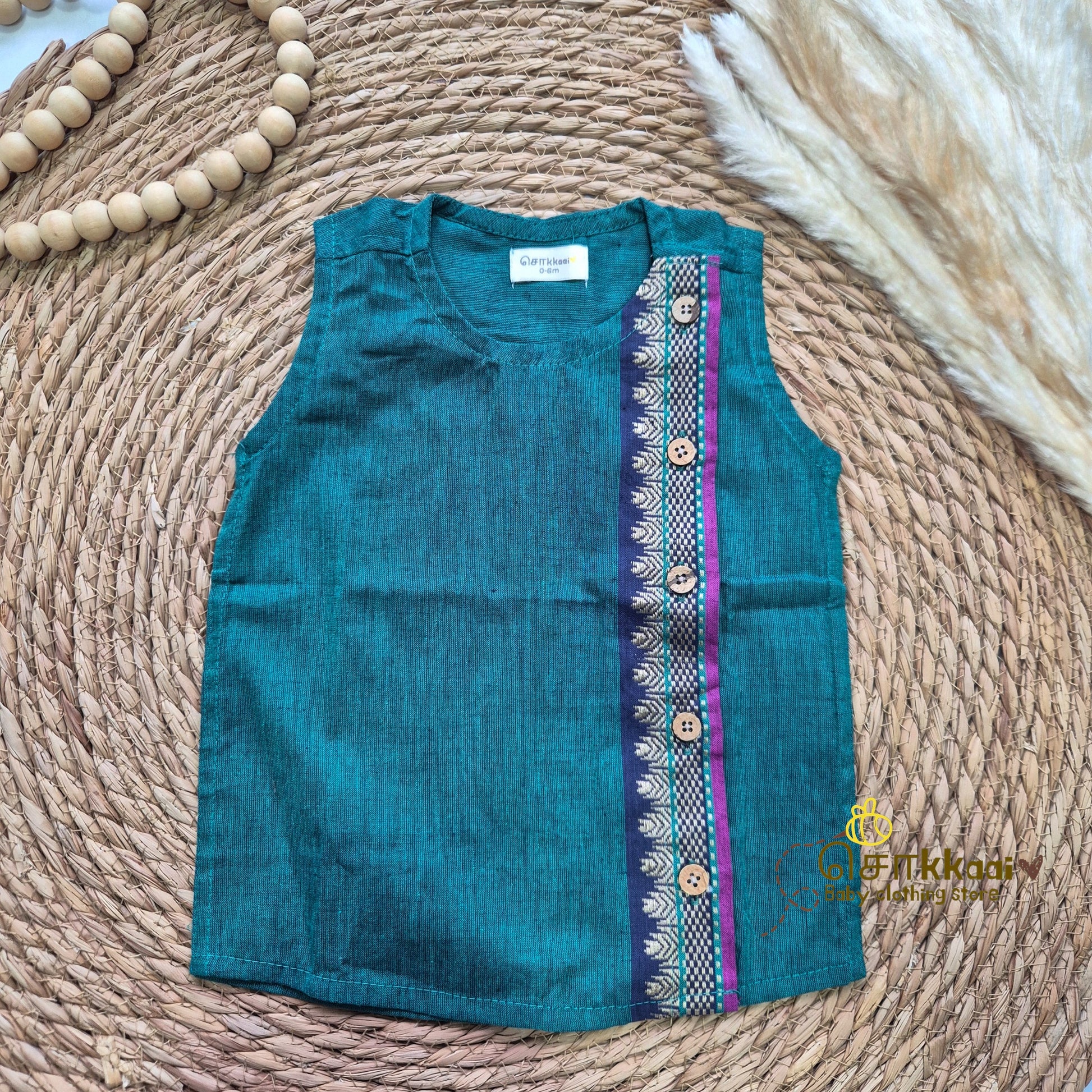 Emerald green with navy side button sleeveless top (0-3years) - Sokkaai