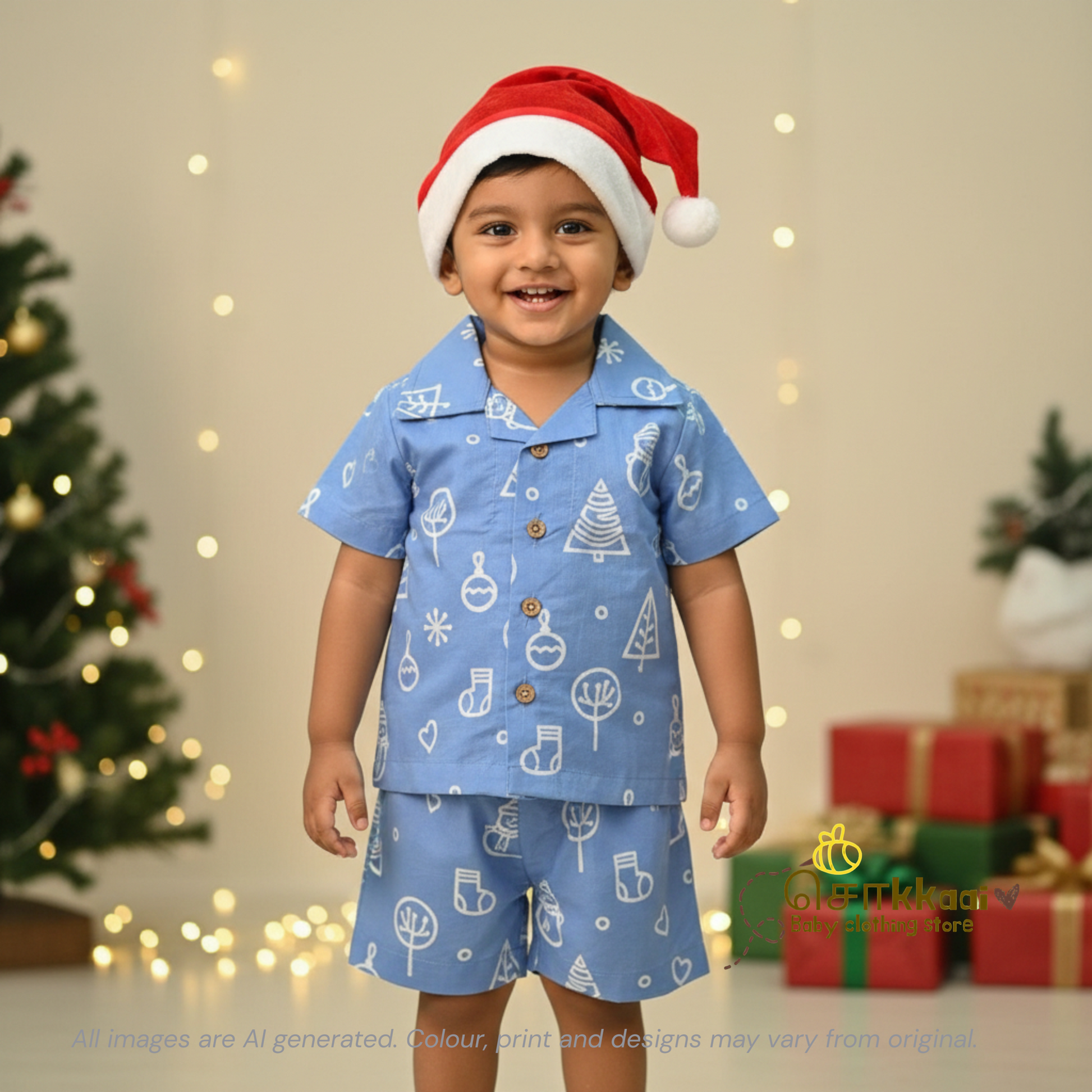 Frosty blue icon Christmas vibe coord set (0-10years) - Sokkaai