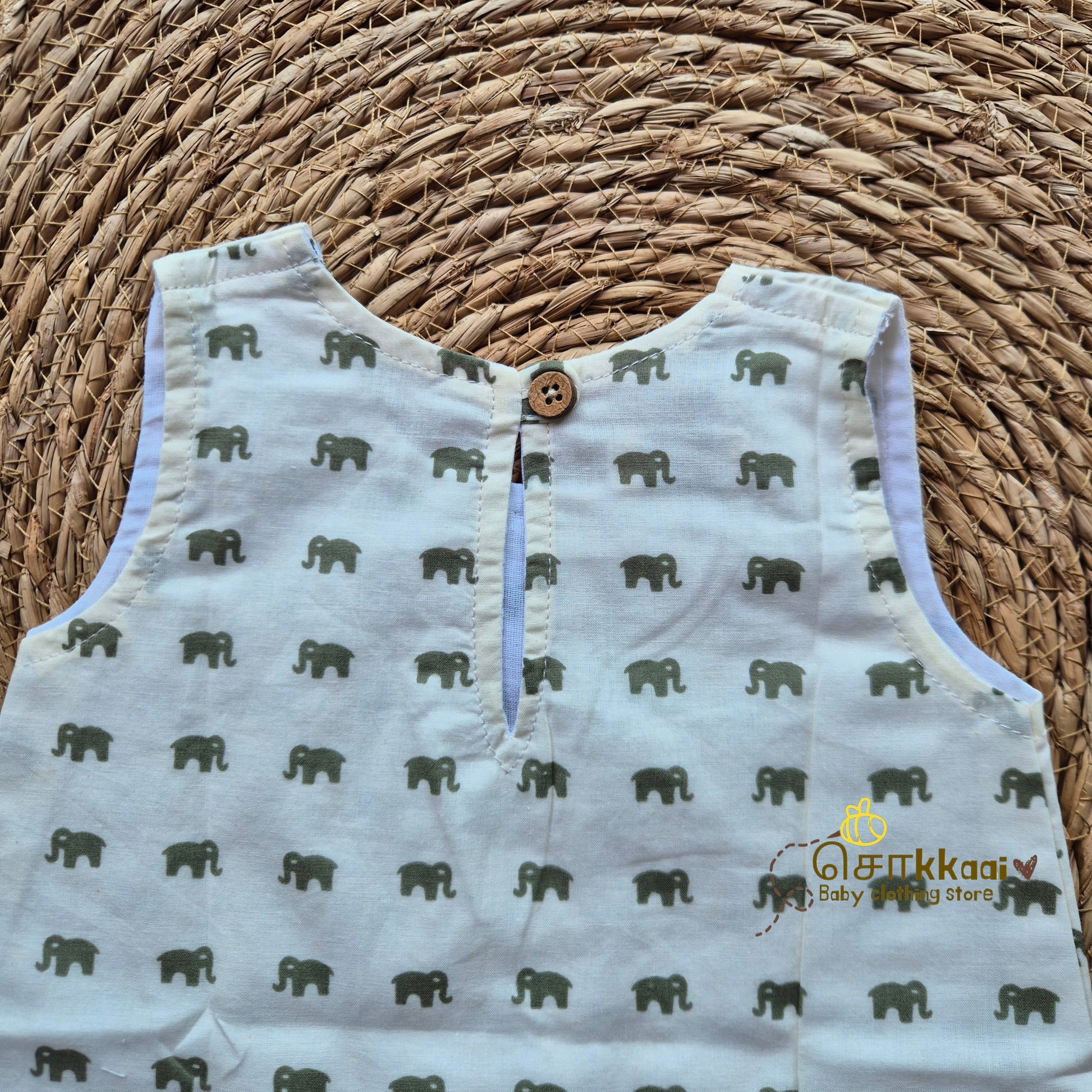 Mini Green Elephant A-line frock - (0-6years) Sokkaai