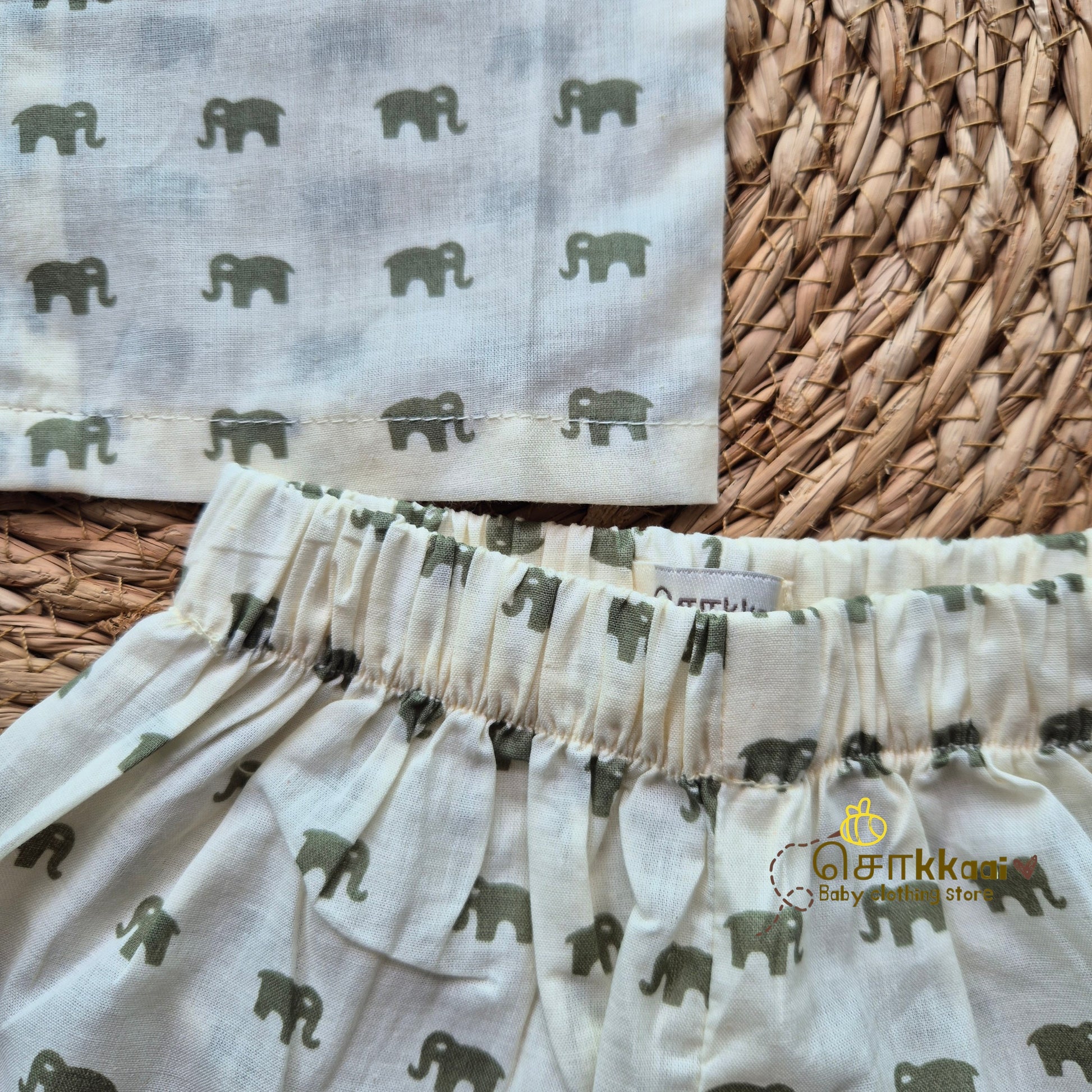 Mini Green Elephant Cotton Coord Set (0-10years) - Sokkaai