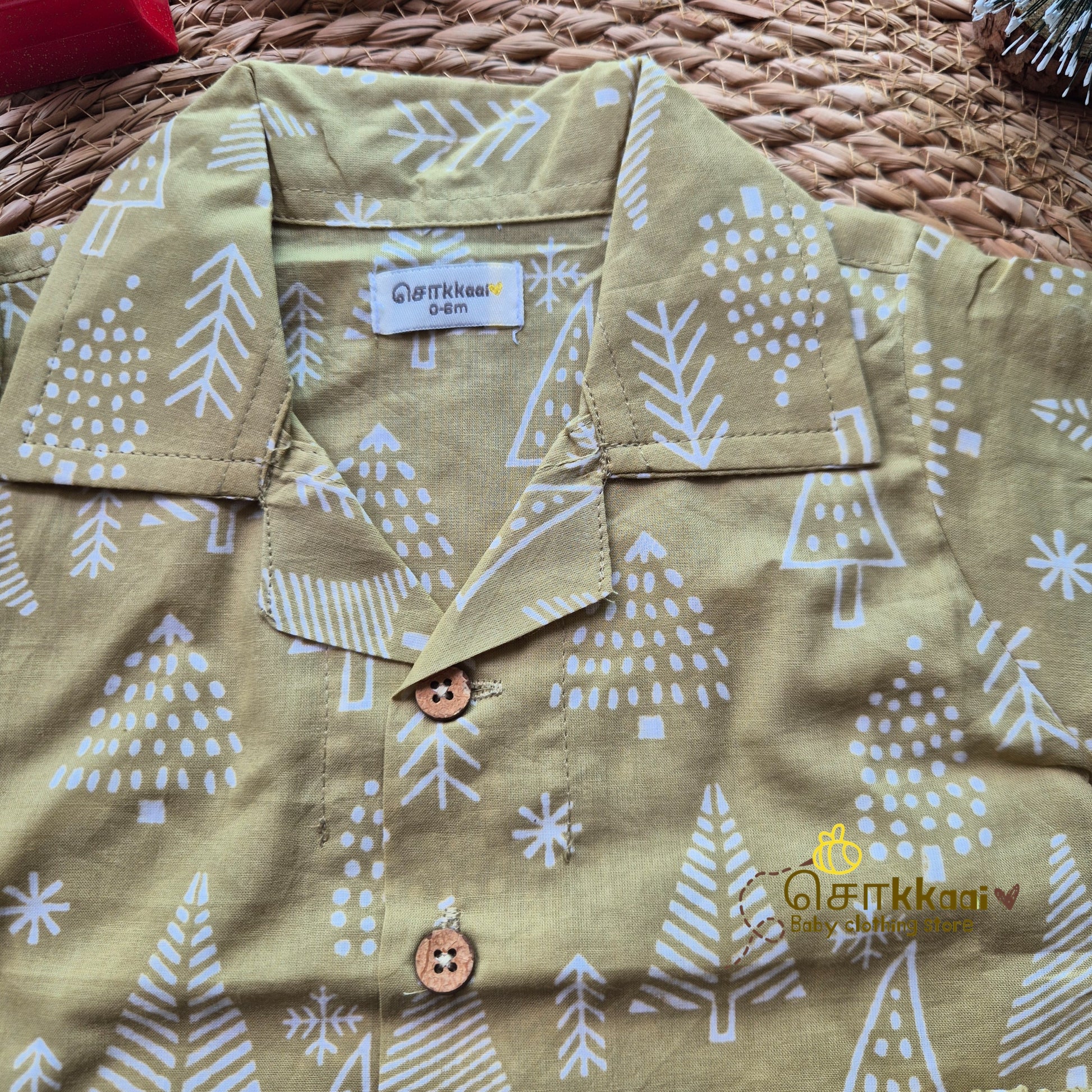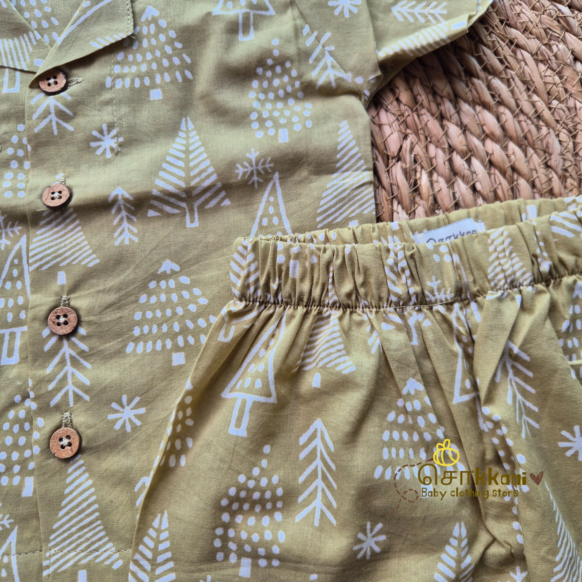 Mustard pine tree Christmas vibe coord set (0-10years) - Sokkaai