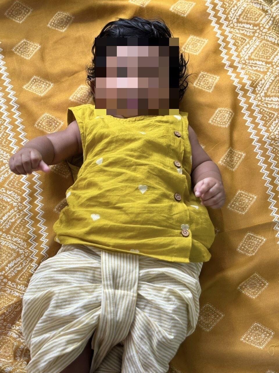 Mustard yellow heart cotton kids dhoti set (0-5yrs) - Sokkaai