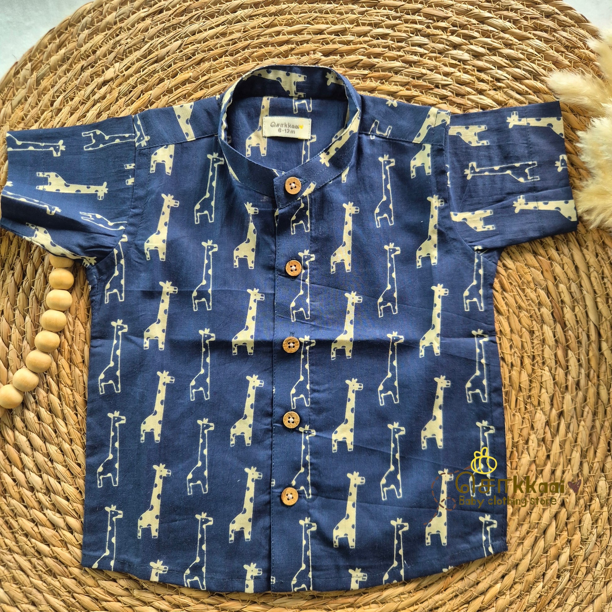 Navy Blue giraffe cambric cotton Kids Shirt (0 to 6yrs) - Sokkaai