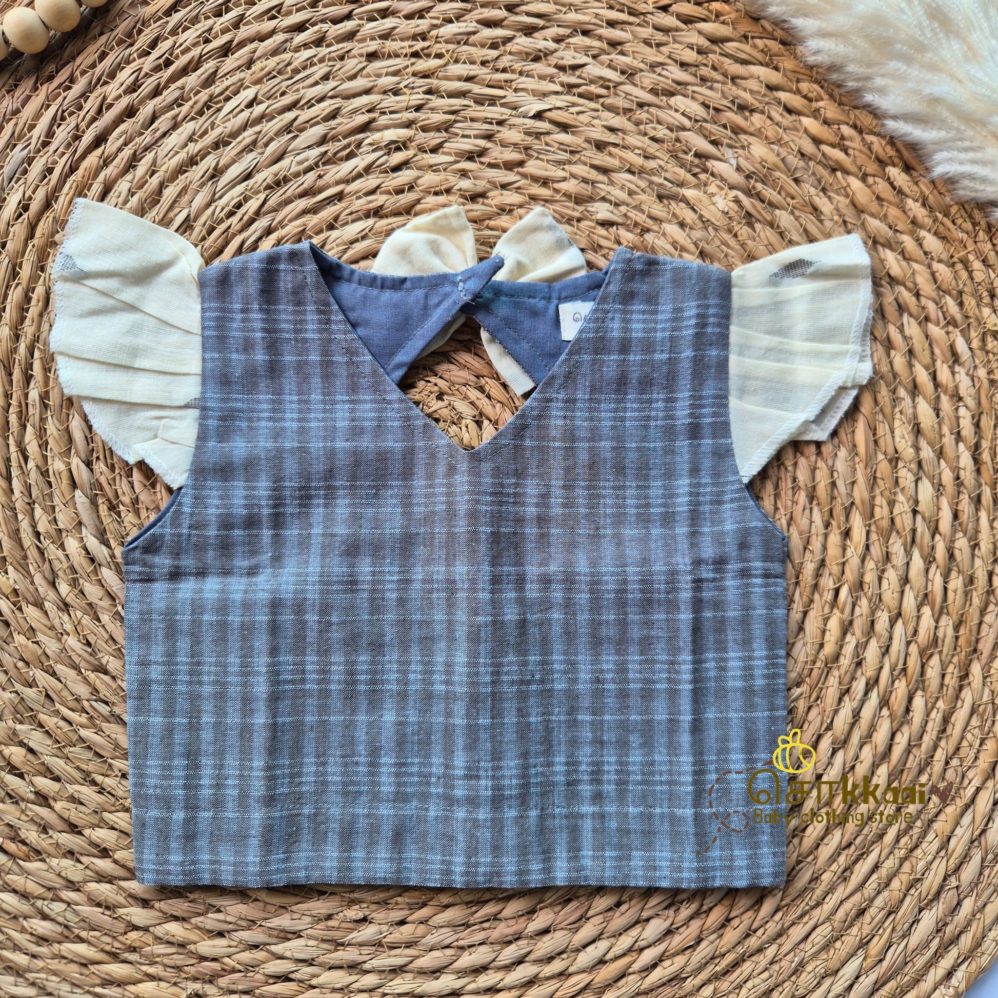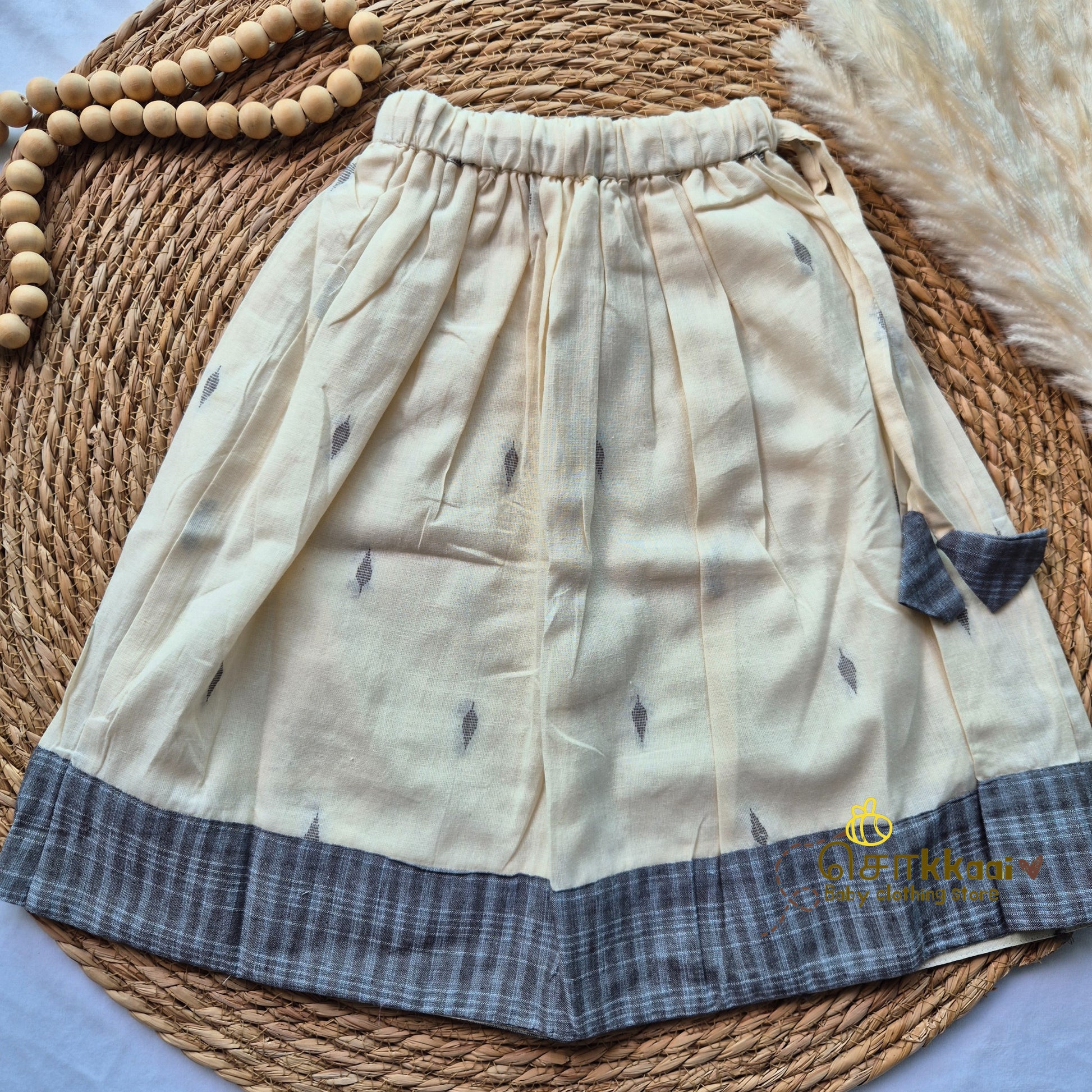 A playful yet ethnic crop top and skirt set, lovingly crafted in Sokkaaiβs handloom cotton. Ideal for festive twinning with parents or as a standalone outfit.