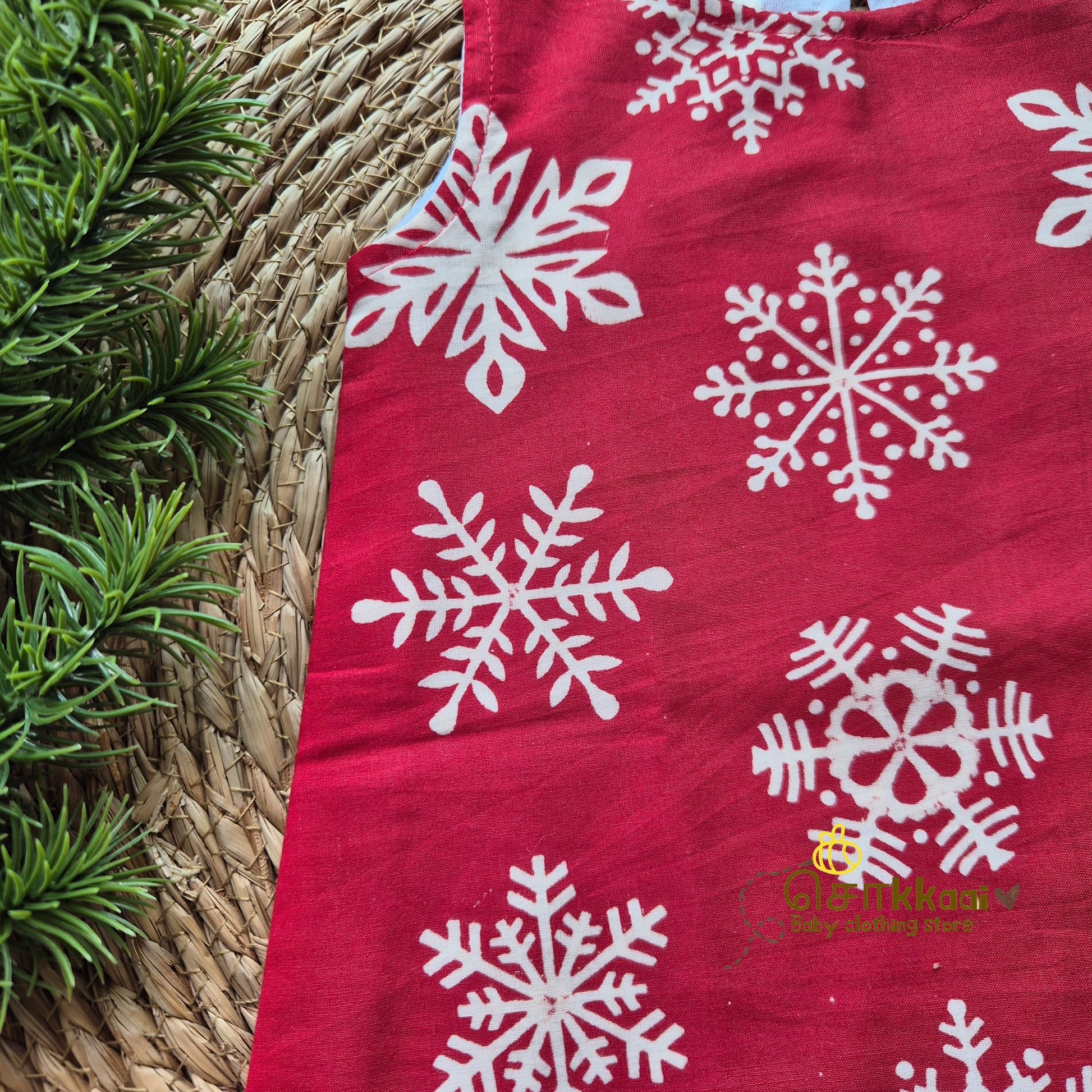 Red snowflakes christams vibe A-line frock - (0-6years) Sokkaai