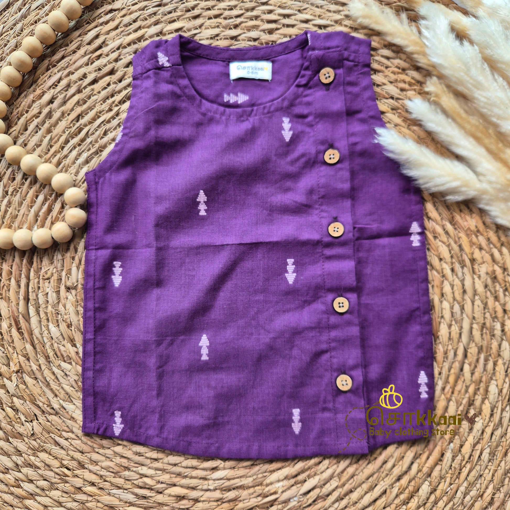 Royal purple arrow side button sleeveless top (0-3years) - Sokkaai