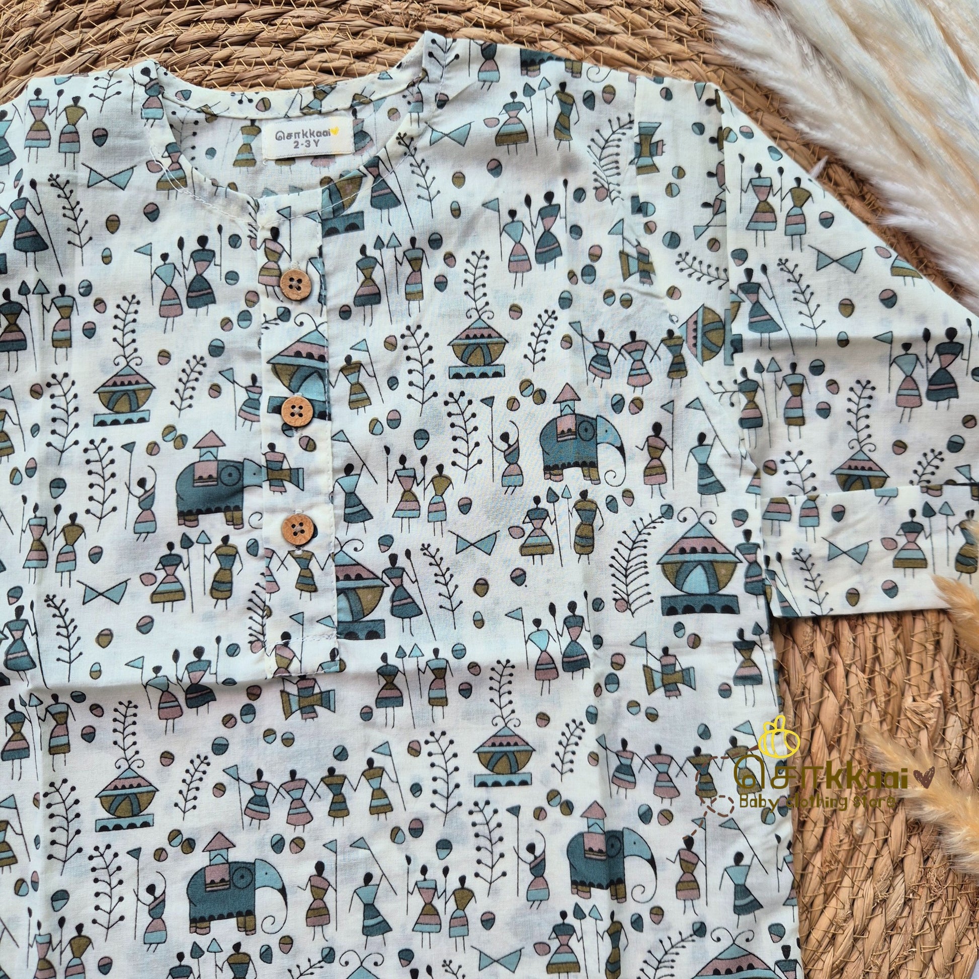 Warli festive Mid length kurta with elbow sleeve (6m-6years) Sokkaai