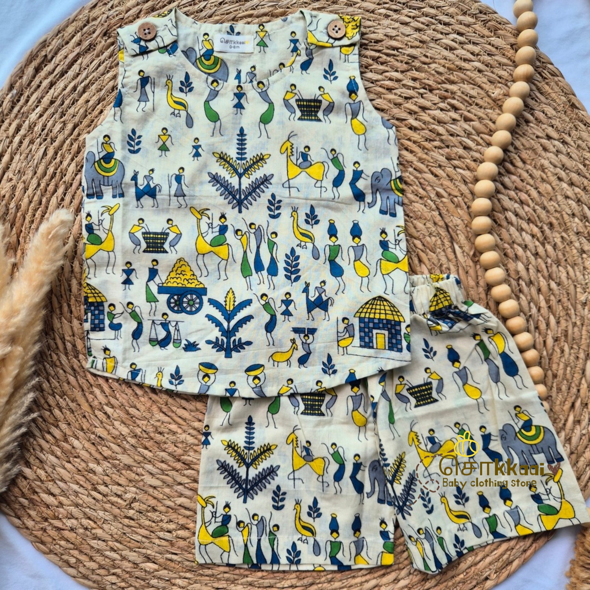 Warli Tales Cotton Coord Set (0-3years) - Unisex - Sokkaai