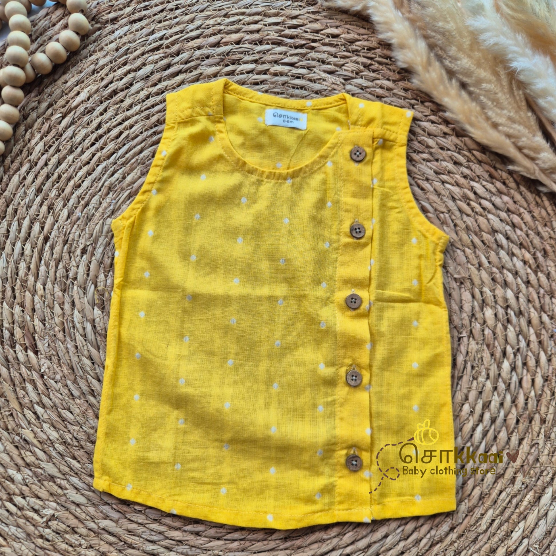 Yellow handloom & Stripes kids cotton dhoti set (0-5yrs) - Sokkaai